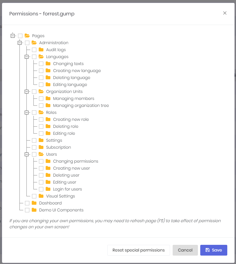 A dialog is used to create/edit a user: